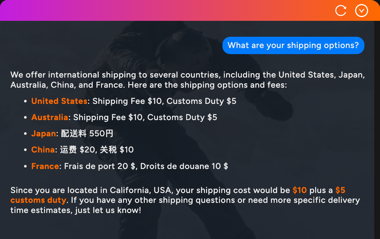 The best part? Your AI FAQ answers are always up-to-date. If a customer asks about product availability, they’ll get real-time inventory information. If they ask about shipping times, they’ll get your current policies. No more outdated FAQ pages that frustrate customers with wrong information!