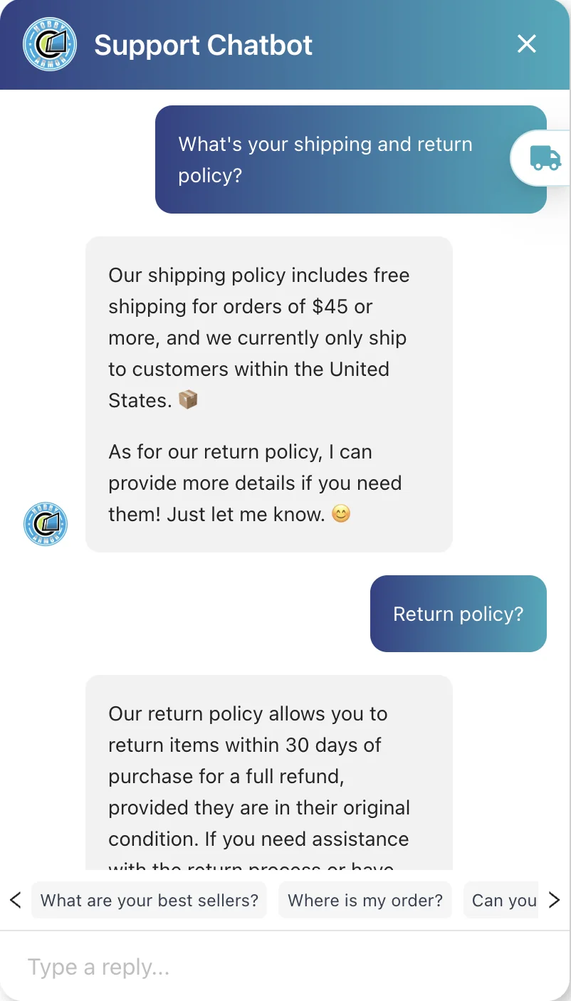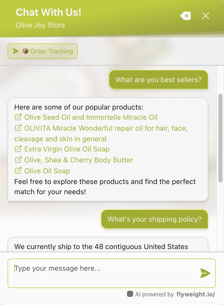 - Order Tracking: Customers can track their orders directly through the chatbot.