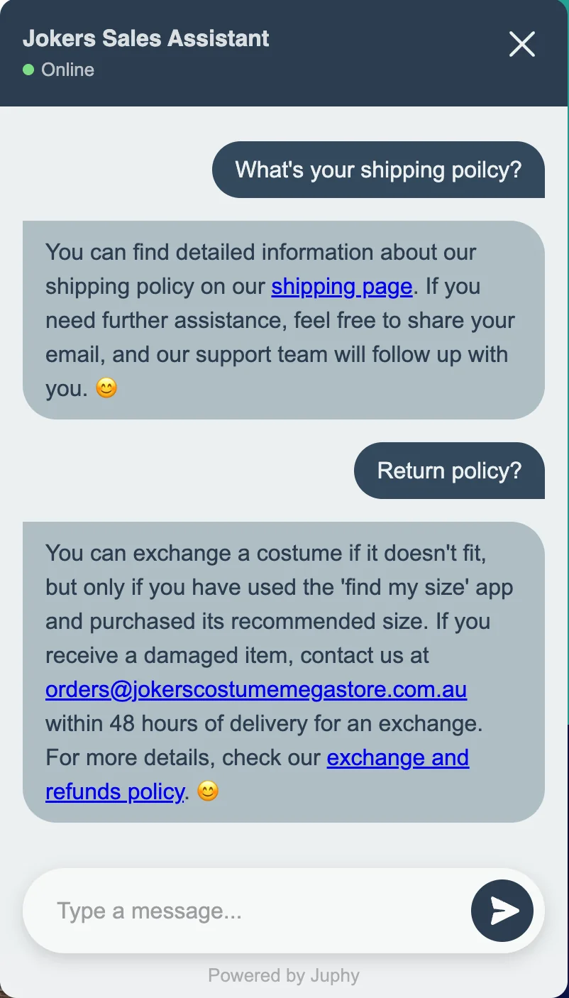 - 24/7 Support: Handles FAQs about sizing, shipping, and returns automatically.
