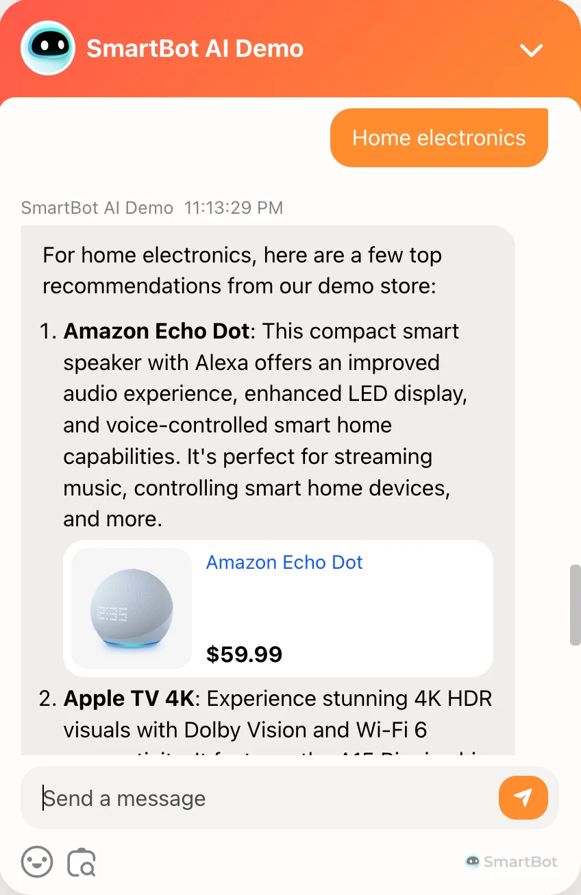 - Smart Product Recommendations: A well-trained chatbot can guide customers to the right product faster than a human—boosting satisfaction and conversions.