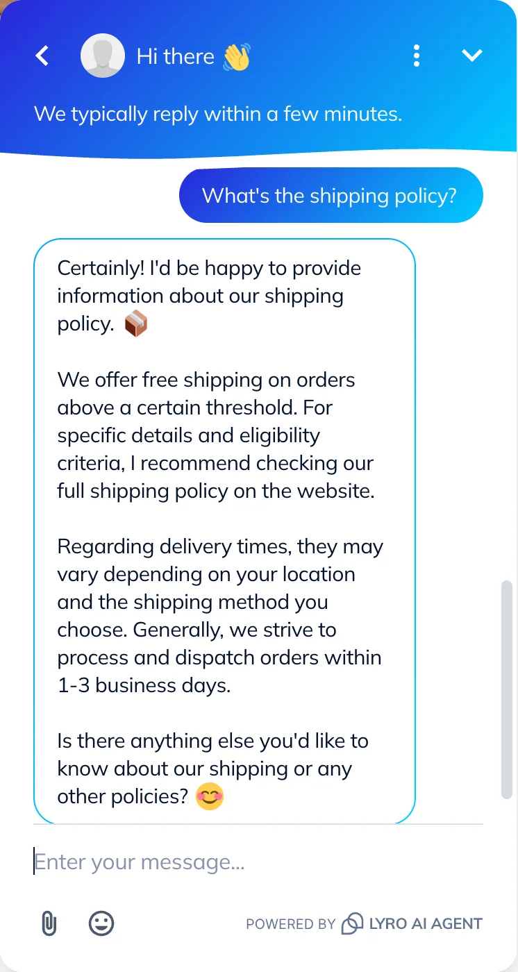 - Lyro AI chatbot for FAQs.