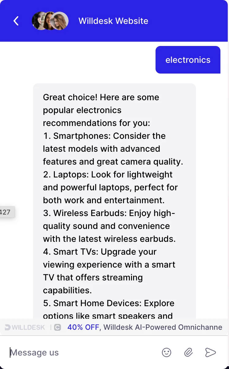 - Automates service with human-like responses.